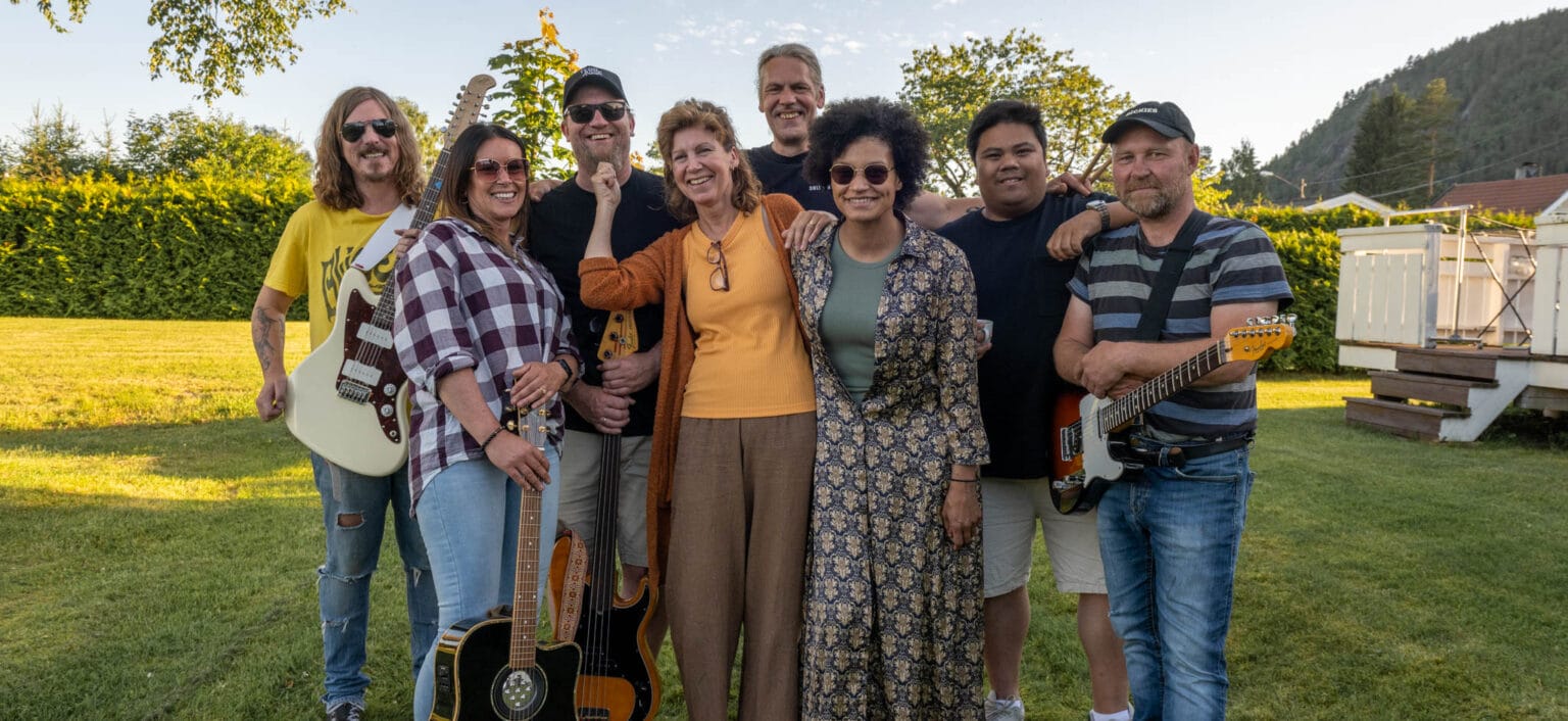Dei to er såvisst ikke aleine! Dei har fått med seg Terje Emblemsvåg (bass), Frank Uleberg (sologitar), Rita Flottorp (song, koring), Natalia Marin (song, koring), Sondre Storstadmo (keyboard) og den energiske trommeslagaren og portrettmålaren Tor H. Olsen. Terje er frå Bygland. Eindel av dykk kjennar han nok frå mange år i Setesdal Roots Band. Sondre kjem frå Kristiansand. Han har spelt med Justified i fleire år. Dei andre seks bur i Evje & Hornnes. I tillegg er Finn Håkon Borgi frå Bygland hyra inn som sjef for lyd og lys. Då er den delen i trygge hender. Under sjølve konserten håpar dei å få med seg bygdefolk og vener til å ta seg av dei mange oppgåvene som høyrer med til eit slikt svært arrangement.