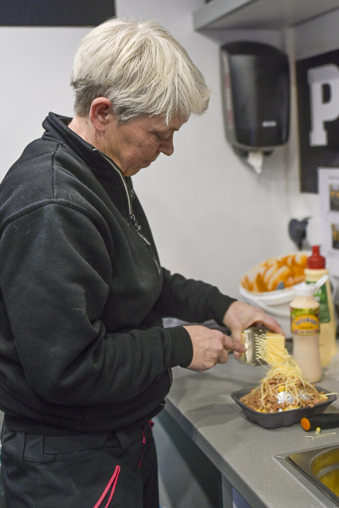 – Mange misforstår litt og trur dei må vente lenge på å få den bakte poteta dei gjerne vil ha, seier Gro Tove. Men det er inga ventetid! Me lagar dei ferdige på førehand, og held dei oppvarma. «Ventetida» er berre den korte tida det tek å gjere dei heilt ferdige til utlevering, max. 3 minutt! Få også med at me kan servere allergivenleg mat, avsluttar ho på inn- og utpust.