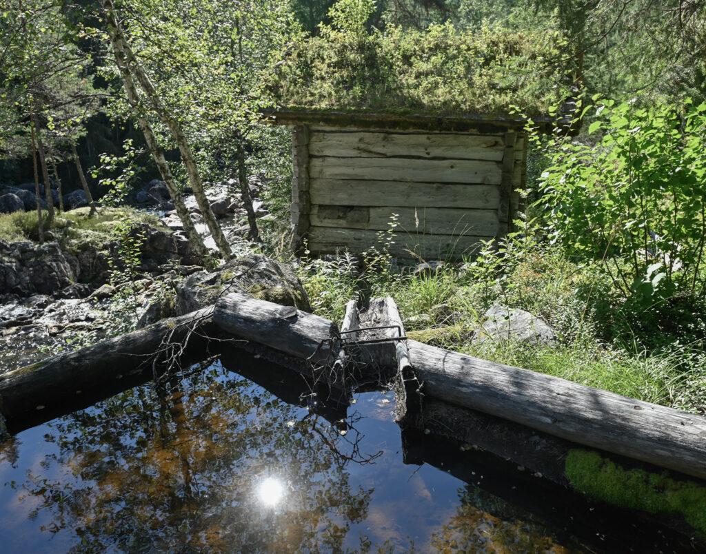 Vassrenna som fører vatnet ned på kvernkallen under kvernhuset til Der heime. Foto: Geir Daasvatn